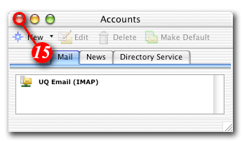 | 15)You should now see your account in the Accounts List (shown above). When you have finished with this screen click the top left button to close the Accounts window. |